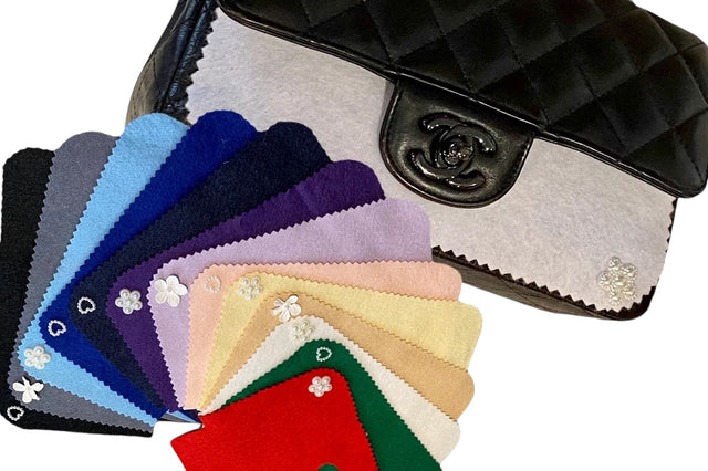 Created originally for the Chanel Wallet On Chain, to help prevent that annoying little dink where the under-flap zip presses into the leather. These cute little accessories soon became so popular that we expanded the range to cover every size of Chanel Flap bag and we have some classy and fabulous felt prints to add a little something fun as your bags are resting!