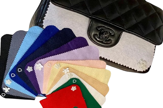 Created originally for the Chanel Wallet On Chain, to help prevent that annoying little dink where the under-flap zip presses into the leather. These cute little accessories soon became so popular that we expanded the range to cover every size of Chanel Flap bag and we have some classy and fabulous felt prints to add a little something fun as your bags are resting!